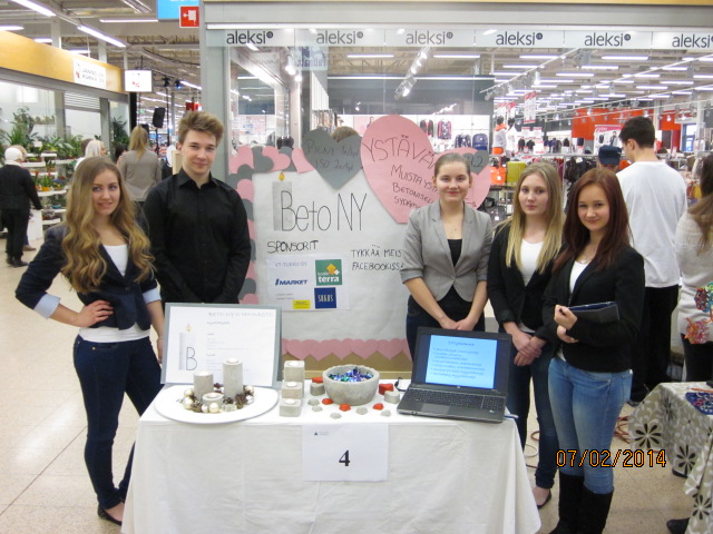 Lyseon koulun 9-luokan NY-yritykset: Beto, K-Kuori, Tik ja Villit Vinyylit olivat näkyvästi mukana messuilla. Lyseon koulun yritykset muodostivat tuotteineen tänä vuonna puolet koko Satakunnan aluemessujen peruskoulun sarjan yrityssikermästä. Koulumme kaikki yritykset edustivat ansiokkaasti & fiksusti – erityismaininnan ansaitsee Beto NY (Aino Mäntylä, Emma Mailanen, Ida-Ellen Dahlberg, Hilda Lindfors, Almiina Yli-Kesti ja Tuukka Grönholm), joka voitti palkinnon parhaasta messuosastosta! Peruskoulusarjasta Kajaanin kevään SM-loppukilpailuun pääsi tänä vuonna Harjavallan yläkoulun yritys ja lukiosarjasta jatkoon pääsi Merikarvian lukion tiimi. Kauppa kävi messuyrityksiltämme myös sutjakkaasti ja koululle palattiin taas myös yhtä kokemusta rikkaampana.